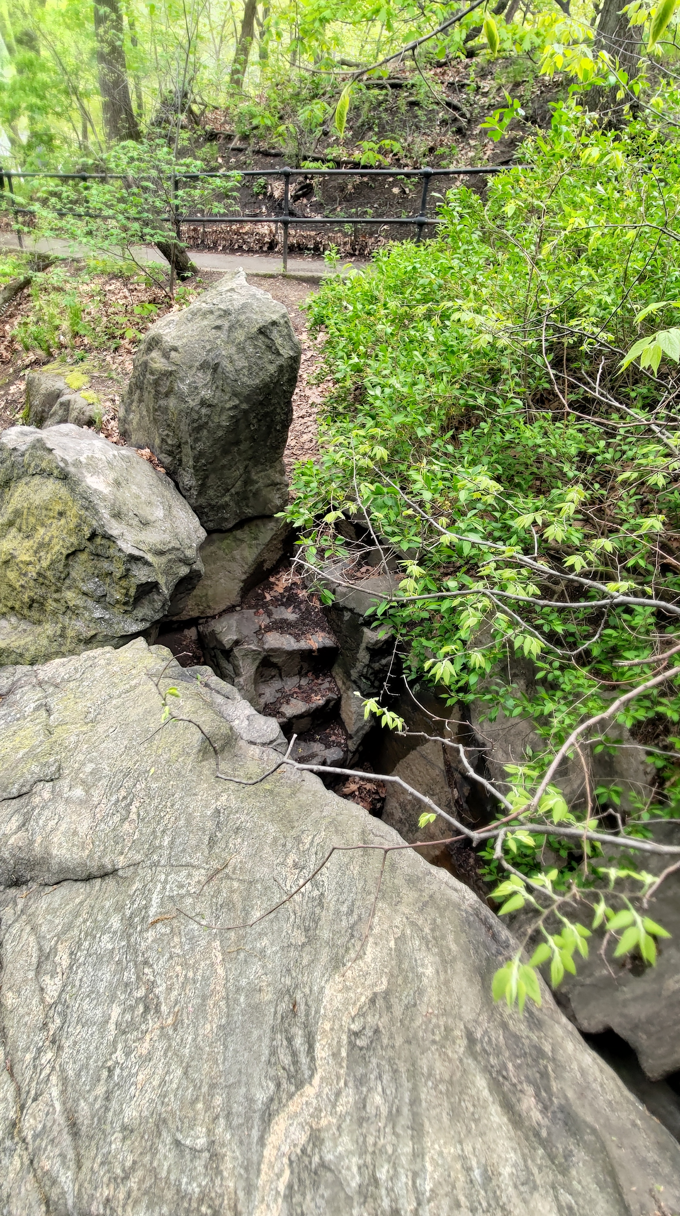 A Central Park non ci sono solo laghi, ponti e aiuole: in alcune zone di questo immenso parco ci si ritrova immersi in veri e propri boschi dove la vegetazione cresce rigogliosa e i sentieri si fanno più piccoli. Qui, ben nascosta e lontana dai percorsi più battuti, si trova la poco nota Ramble Cave. 🔎